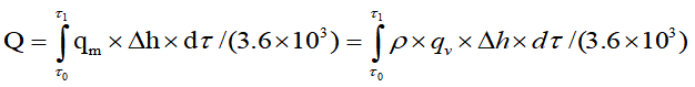 qv-流經熱量表的水的體積流量,單位為m3/h