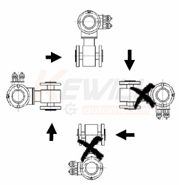 注: 對于含有固體顆粒的液體或者漿液建議垂直安裝,
