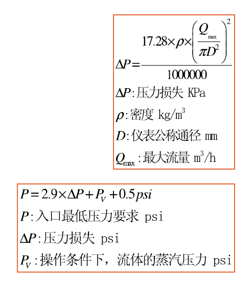 ● 入口壓力:測量液體流量時,流量計對入口壓力的最低要求按計算公式計算