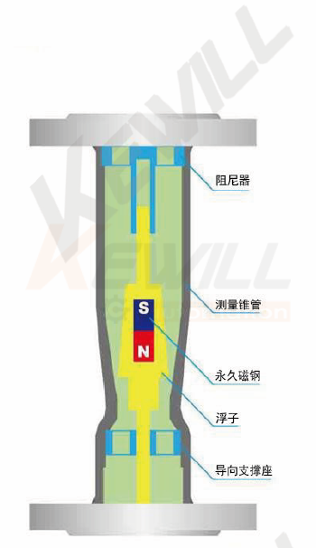 轉達子流量計是變截面定壓差流量計。作用在浮子上下游的壓力差為定值,而浮子與錐管間環形截面積隨流量而變。浮子在錐形管中的位置高低即反映流量的大小。