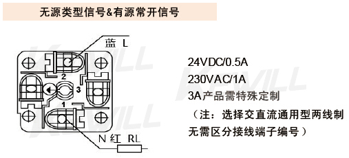 | 交直流通用型;無源觸點信號 常閉信號單點設定(無LED指示燈) | ||||||||