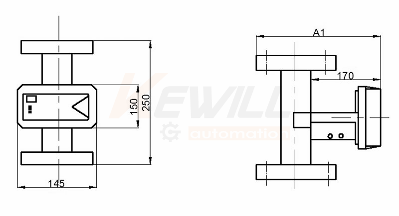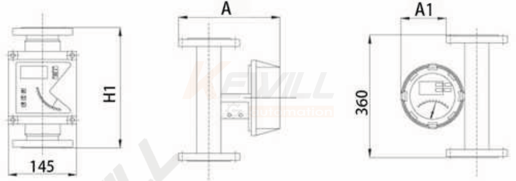 由就地指示器中的隨動磁鋼與浮子內磁鋼耦合;而發生轉動,同時電動指針。通過刻度盤指示出此時流 量大小。(如下圖所示) |