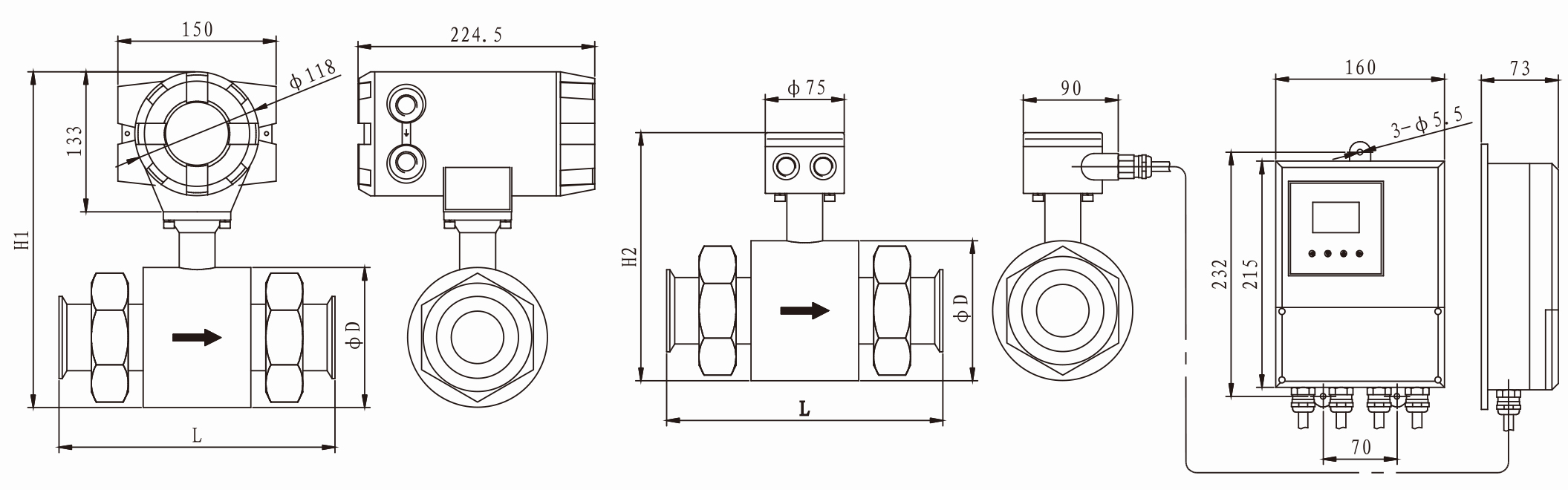 說明: 夾持型電磁流量計標配為二個測量電極,在選型時一定要配置接地環。否則流量計無法正常工作。