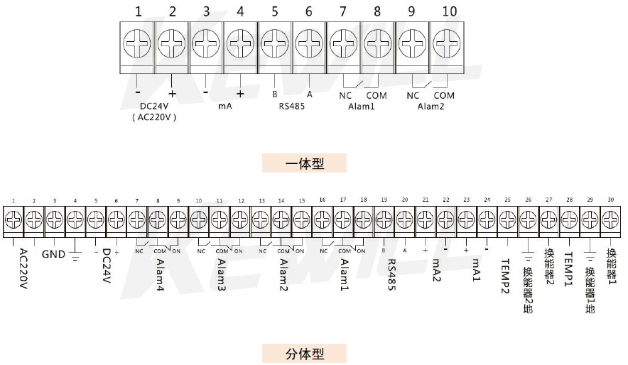 | 4~20mA輸出+2路開關輸出(24V,5A繼電器信號) | |||||||||