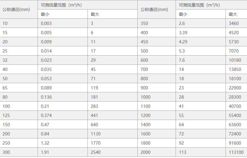 ●從經濟性考慮,可以選擇適當流速所對應的口徑的電磁流量計,相對減少投資(見流量范圍表);
