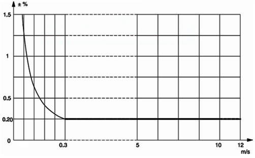 電磁流量計系統的準確性曲線圖(±0.5%)