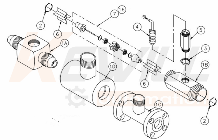 礦物油流量計:渦輪的轉(zhuǎn)速通過裝在機殼外的傳感線圈來檢測。當(dāng)渦輪葉片切割由殼體內(nèi)永久磁鋼產(chǎn)生的磁力線時,就會引起傳感線圈中的磁通變化。