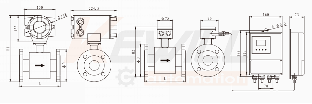 FE30H硫酸流量計(冷能)測量原理基于法拉第電磁感應定律:導電液體在磁場中切割磁力線運動時,導體中產生感應電勢,感應電E: