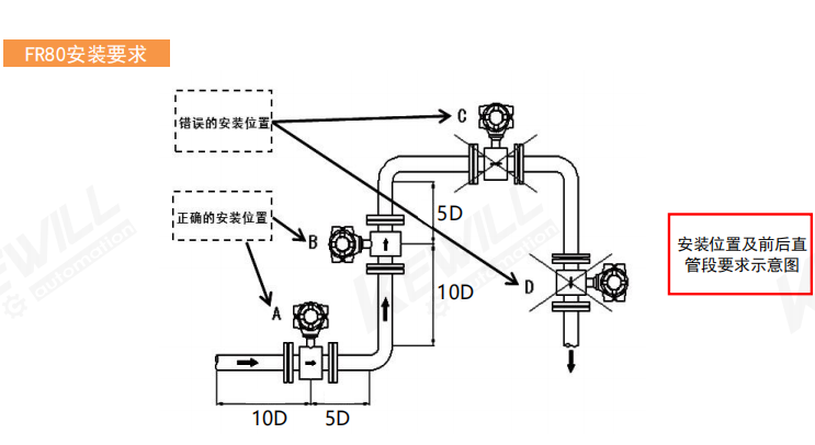 安裝位置的影響: | 能確保傳感器滿管和保證前后足夠的直管段,則安裝無影響 |
