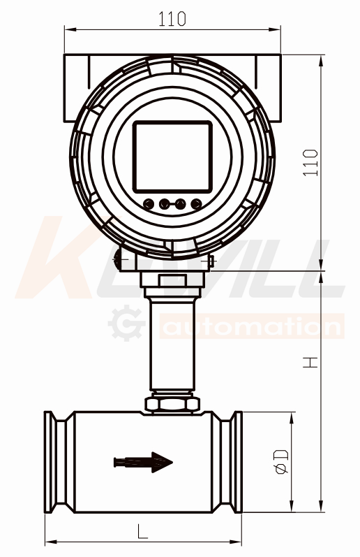 "潤滑油流量計是一種速度式流量計。如下圖所示,在管道中心安放一個渦輪,兩端由軸承支撐,當流體通過管道時,沖擊渦輪葉片,對渦輪產生驅動力矩,使渦輪克服摩擦力矩和流體阻力矩而產生旋轉;在一定的流量范圍內,對一定的流體介質粘度、渦輪的旋轉角速度與流體流速成正比。由此,流體流速可通過渦輪的旋轉角速度得到,從而可以計算得到通過管道的流體流量。 渦輪的轉速通過裝在機殼外的傳感線圈來檢測。當渦輪葉片切割由殼體內永久磁鋼產生的磁力線時,就會引起傳感線圈中的磁通變化。傳感線圈將檢測到的磁通周期變化信號送入前置放大器,對信號進行放大、整形,產生與流速成正比的脈沖信號,送入單位換算與流量積算電路得到并顯示累積流量值;同時亦將脈沖信號送入頻率電流轉換電路,將脈沖信號轉換成模擬電流量,進而指示瞬時流量值。 "